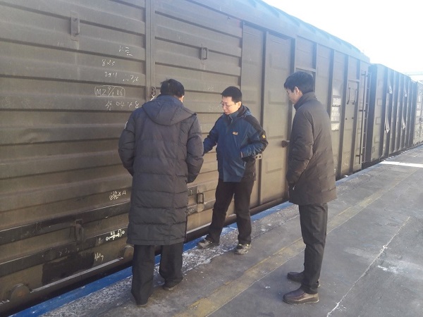 图为检查组检查陕西金泰氯碱化工有限公司专用线装车情况。