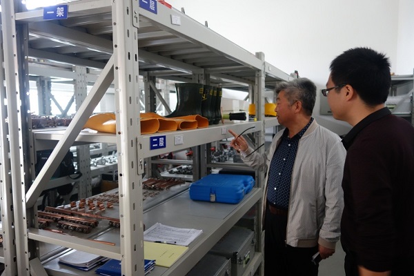 图为检查组检查鄠邑站区防洪备品。