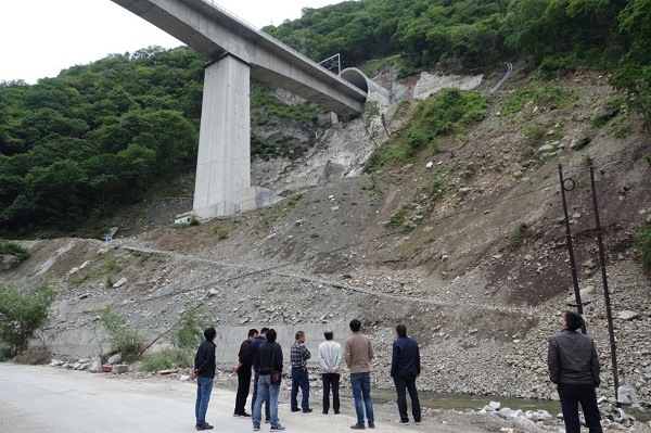图为检查组检查西成客专大庄坪隧道进口。