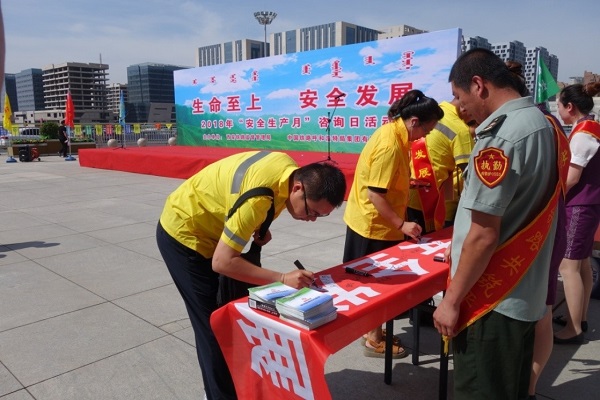 图为呼和浩特东站活动现场职工进行主题承诺签名