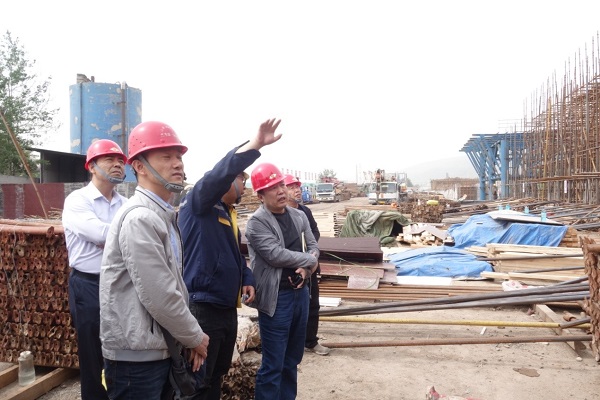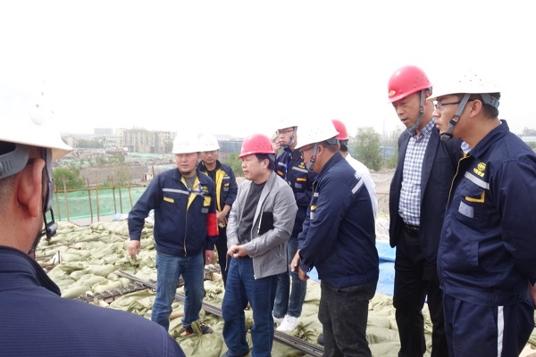 图为检查组检查晋源车站整体施工情况