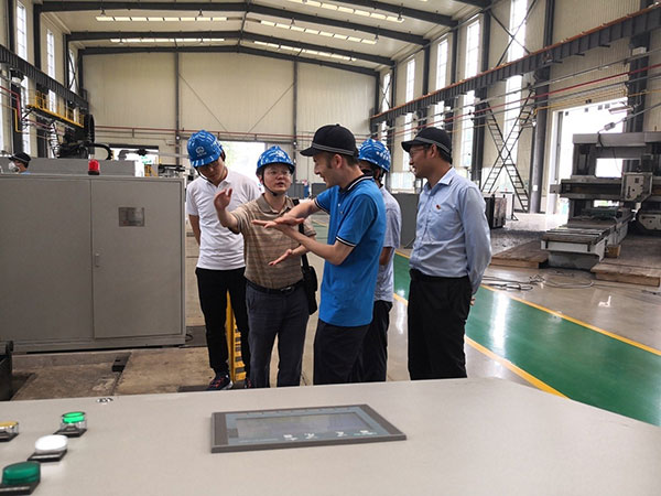 图为检查组现场检查道岔车间垫板生产线