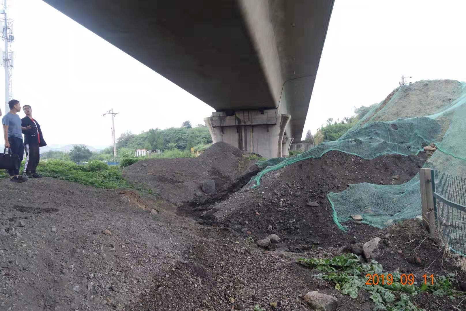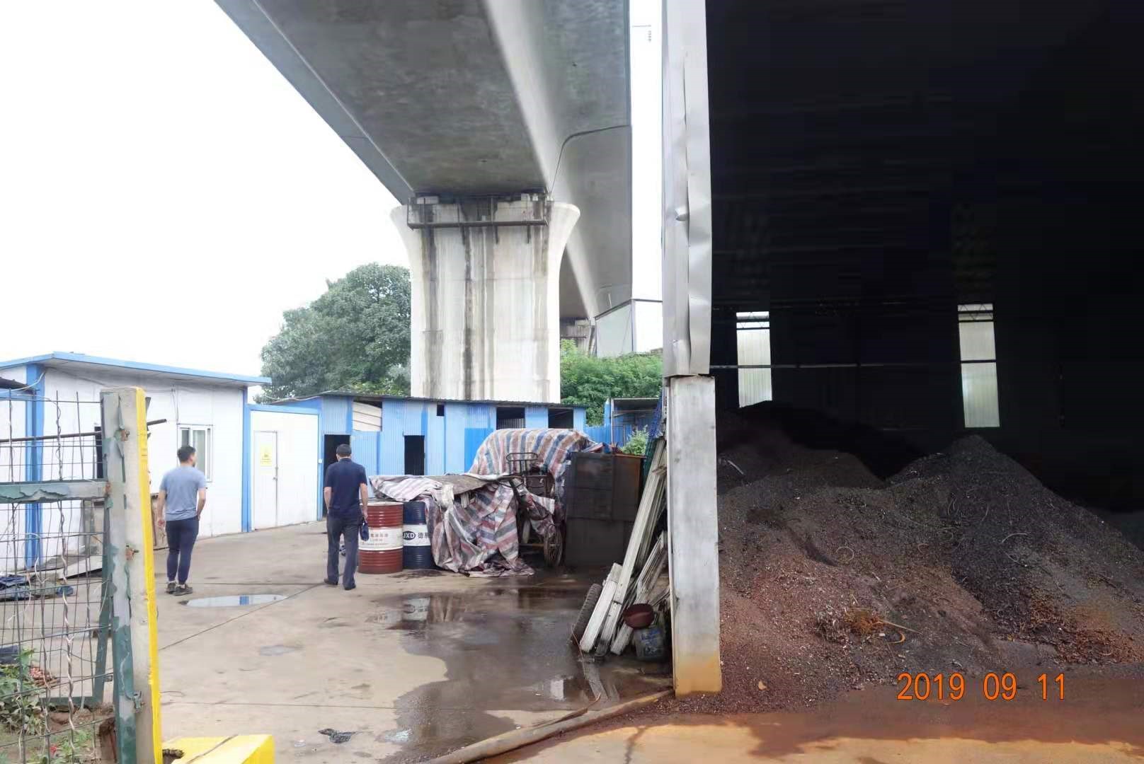 图为执法人员现场核查铁路桥下堆放生产原料行为