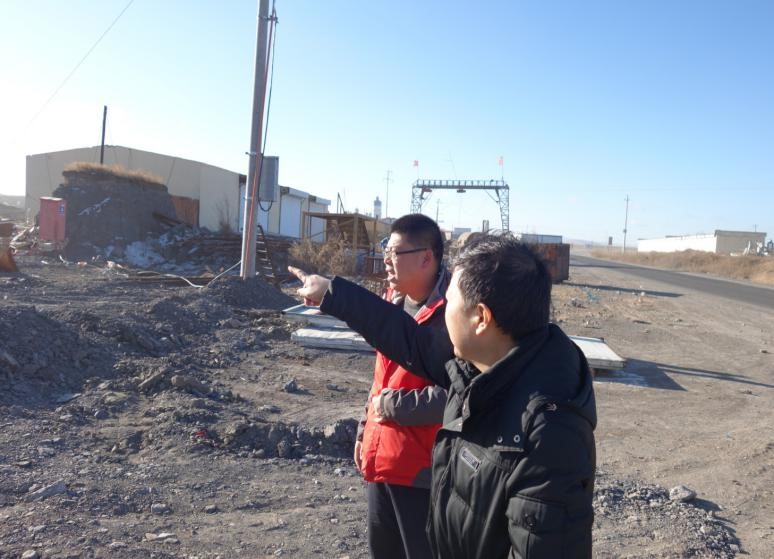 图为检查组抽查呼张客专兴和特大桥附近现场整治情况