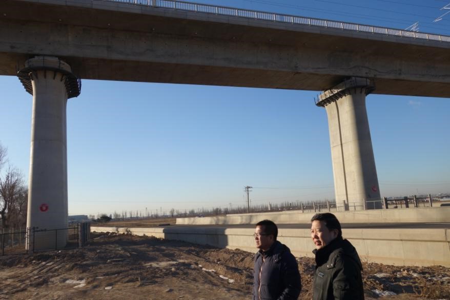 图为检查组抽查大张高铁智家堡御河特大桥附近现场整治情况