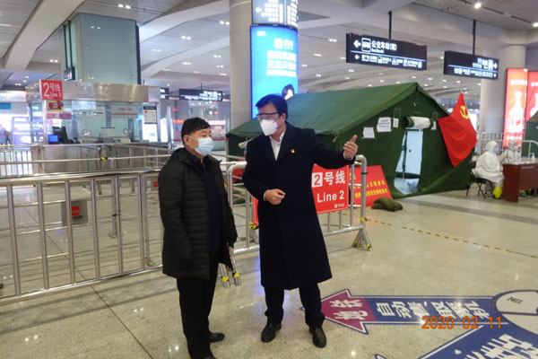 图为检查出站口配合地方政府疫情防控工作开展情况