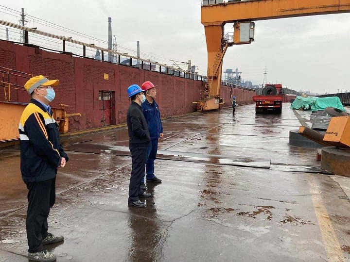 图为检查组实地查看陕钢集团韩城钢铁有限责任公司现场作业