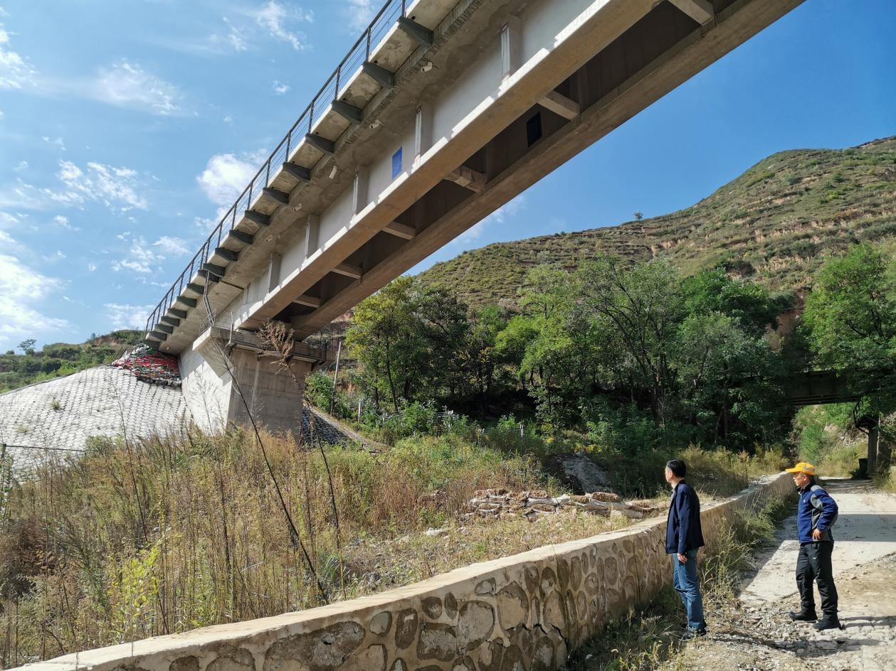 图为检查组在宝天线K1360+900水害现场检查复旧情况