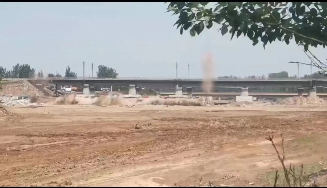 图为拦河大坝爆破中