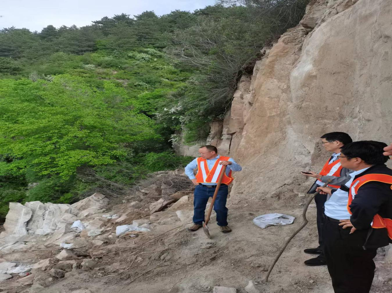 图为检查太原局集团公司太焦线K43+200-K43+500公里处I级防洪点